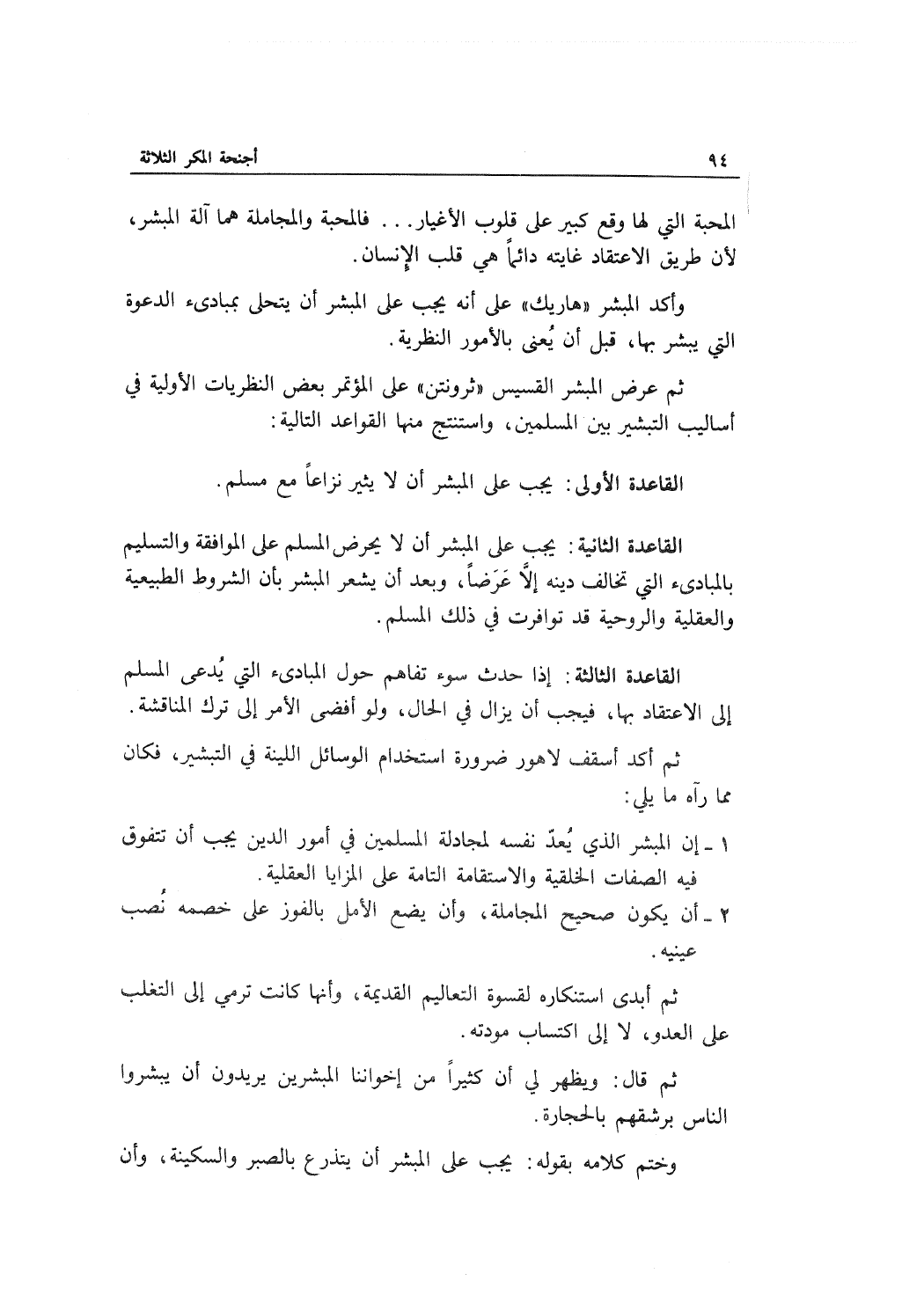 القاعدة الأولى: يجب على المبشر ألا يثير نزاعاً مع مسلم.