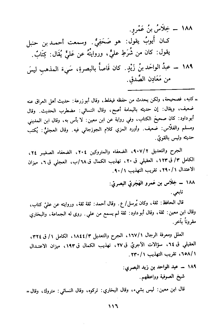 188 خلاس بن عمرو كان أيوب يقول هو صحفي وسمعت أحمد بن حنبل يقول كان من شرط علي وروايته عن علي يقال كتاب