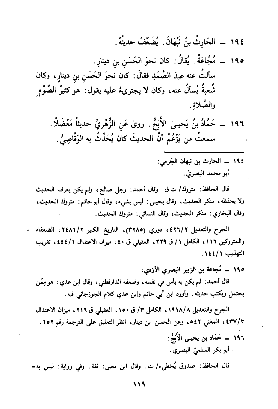 195 مجاعة يقال كان نحو الحسن بن دينار سألت عنه عبدالصمد فقال كان نحو الحسن بن دينار وكان شعبة يسأل عنه وكان لا يجترىء عليه يقول هو كثير الصوم والصلاة
