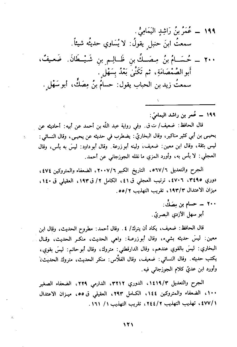 199 عمر بن راشد اليمامي سمعت ابن حنبل يقول لا يساوي حديثه شيئا