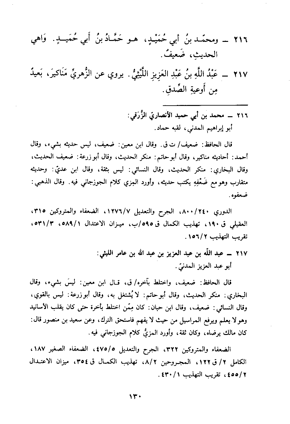 217 عبدالله بن عبدالعزيز الليثي يروي عن الزهري مناكير بعيد من أوعية الصدق