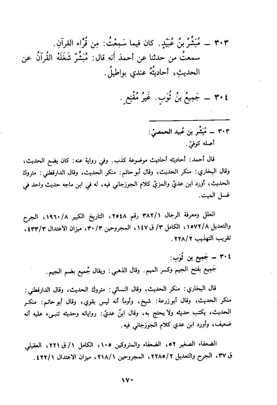 303 مبشر بن عبيد كان فيما سمعت من قراء القرآن سمعت من حدثنا عن أحمد أنه قال مبشر شغله القرآن عن الحديث أحاديثه عندي بواطيل