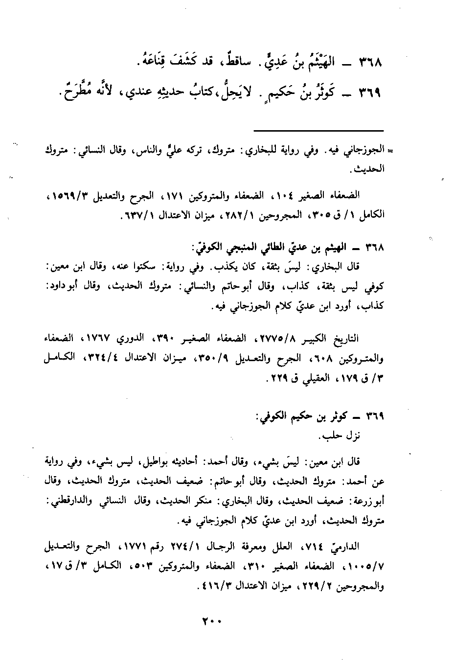 369 كوثر بن حكيم لا يحل كتاب حديثه عندي لأنه مطرح