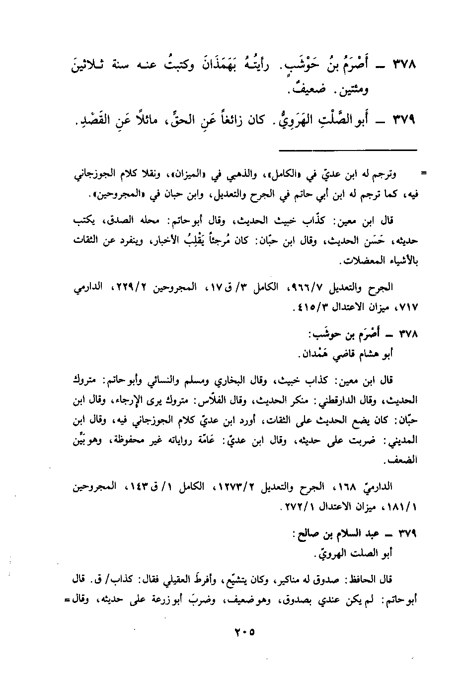 378 أصرم بن حوشب رأيته بهمذان وكتبت عنه سنة ثلاثين ومئتين ضعيف