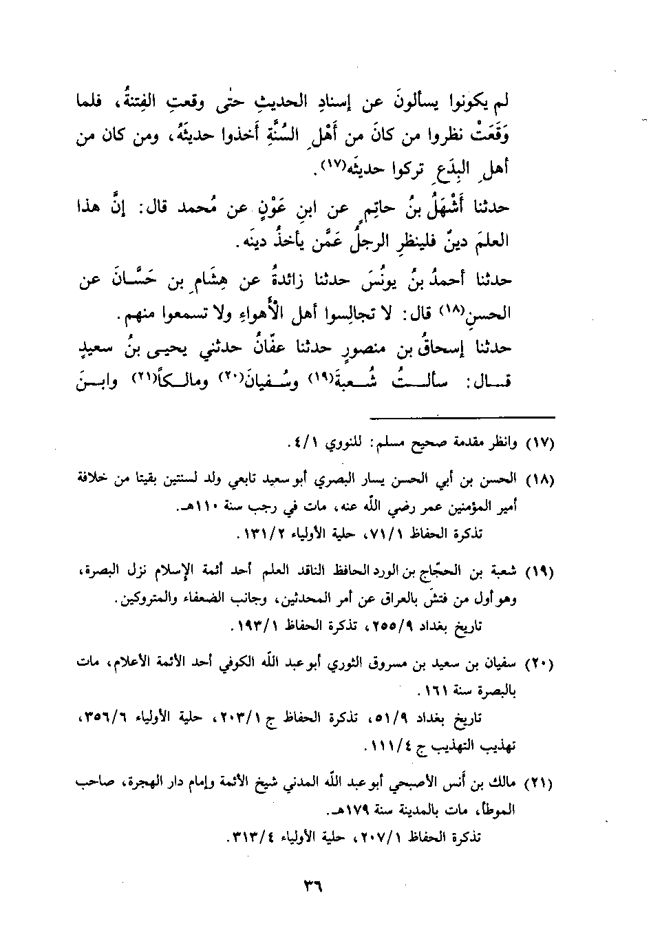 لم يكونوا يسألون عن إسناد الحديث حتى وقعت الفتنة فلما وقعت نظروا من كان من أهل السنة أخذوا حديثه ومن كان من أهل البدع تركوا حديثه