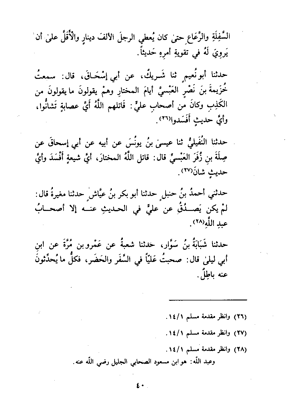 حدثني أحمد بن حنبل حدثنا أبو بكر بن عياش حدثنا مغيرة قال لم يكن يصدق عن علي في الحديث عنه إلا أصحاب عبدالله