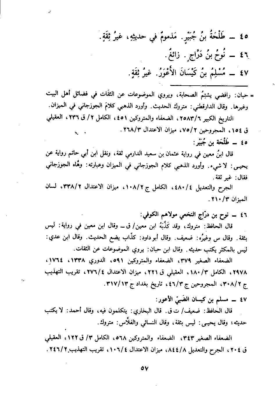 45 طلحة بن جبير مذموم في حديثه غير ثقة