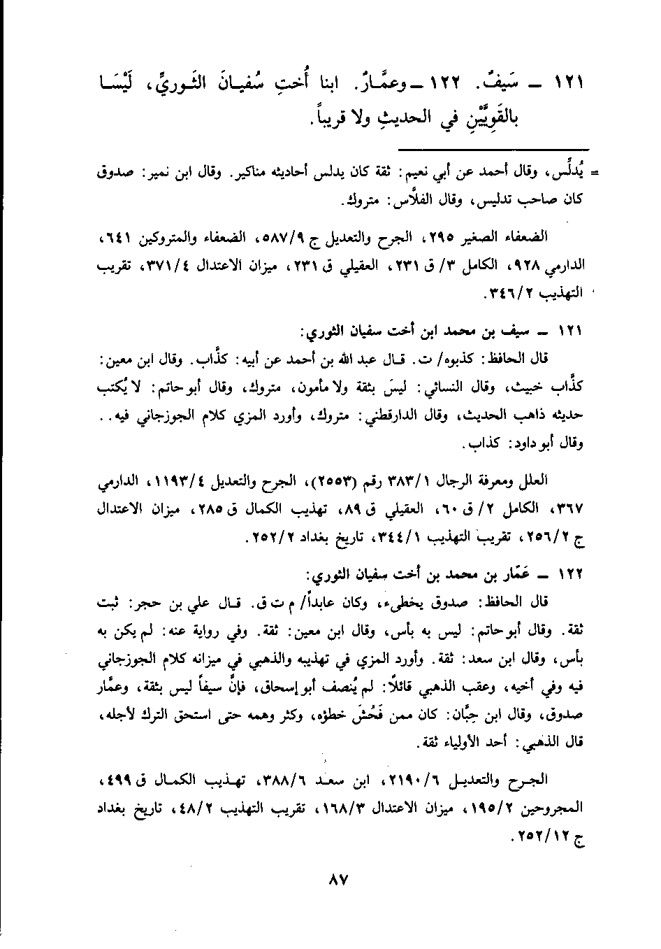 122 وعمار ابنا أخت سفيان الثوري ليسا بالقويين في الحديث ولا قريبا