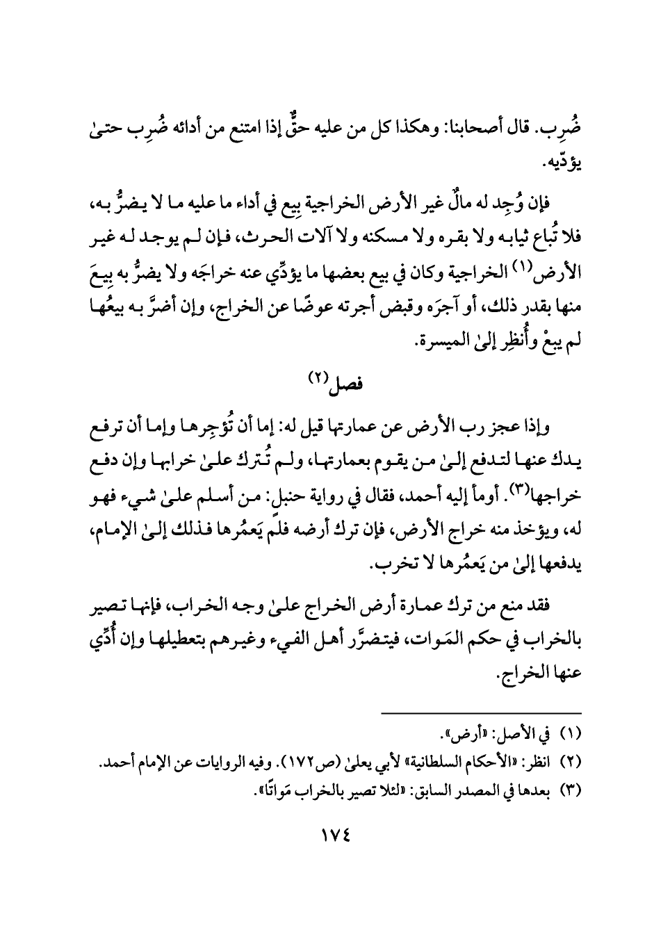 فإن وُجِد له مالٌ غير الأرض الخراجية بِيع في أداء ما عليه ما لا يضرُّ به، فلا تُباع ثيابه ولا بقره ولا مسكنه ولا آلات الحرث، فإن لم يوجد له غير الأرض (¬١) الخراجية وكان في بيع بعضها ما يؤدِّي عنه خراجَه ولا يضرُّ به بِيعَ منها بقدر ذلك، أو آجرَه وقبض أجرته عوضًا عن الخراج، وإن أضرَّ به بيعُها لم يبعْ وأُنظِر إلى الميسرة.