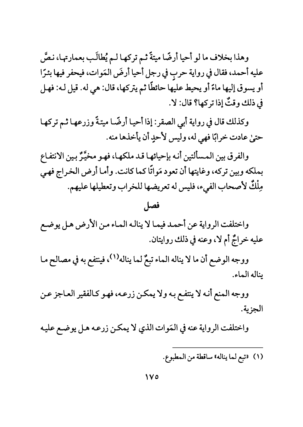واختلفت الرواية عن أحمد فيما لا يناله الماء من الأرض هل يوضع عليه خراجٌ أم لا، وعنه في ذلك روايتان.
