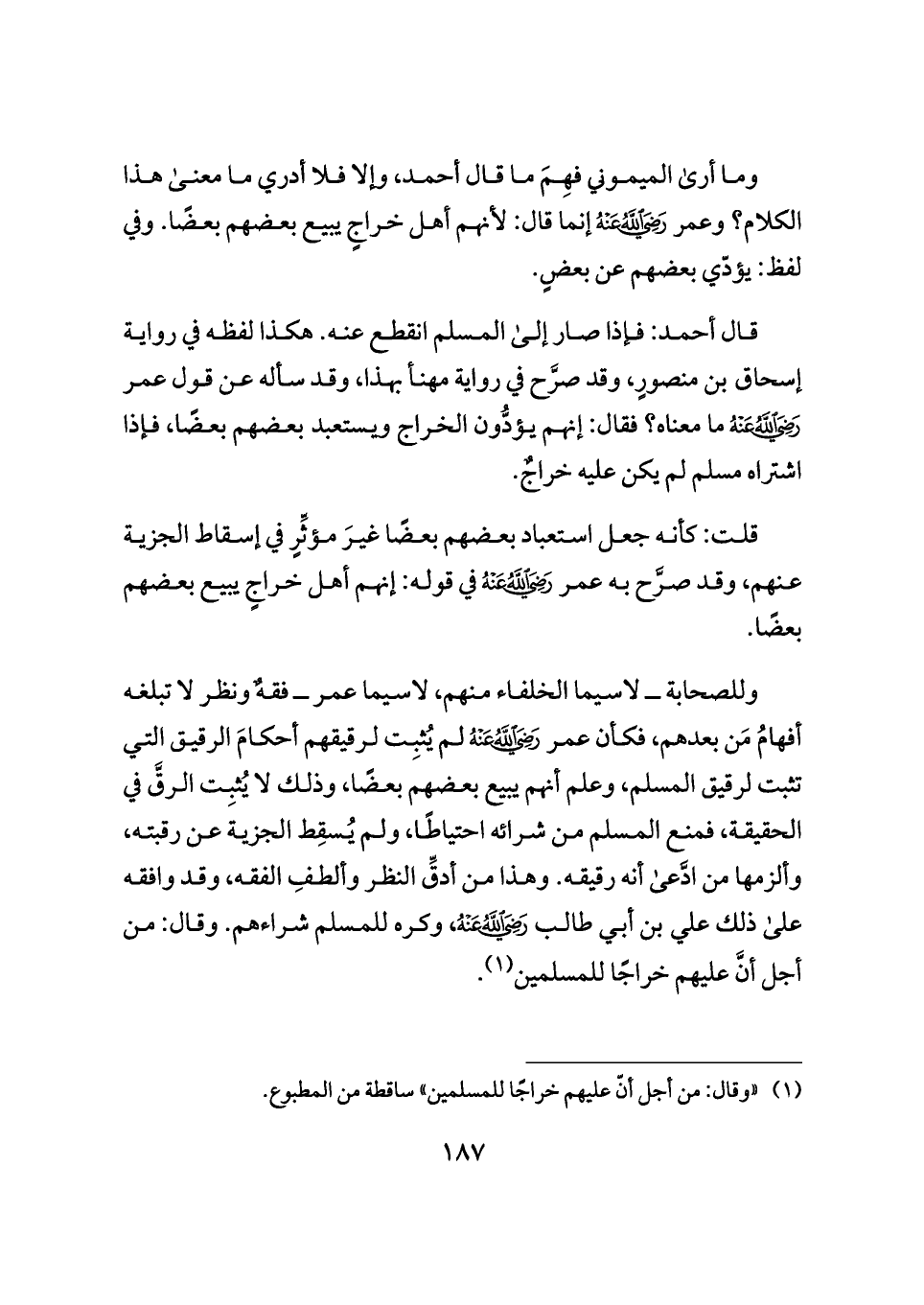 (¬١) "وقال: من أجل أنّ عليهم خراجًا للمسلمين" ساقطة من المطبوع.