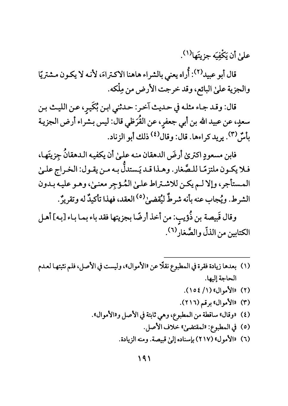 (¬١) بعدها زيادة فقرة في المطبوع نقلًا عن "الأموال"، وليست في الأصل، فلم نثبتها لعدم الحاجة إليها.