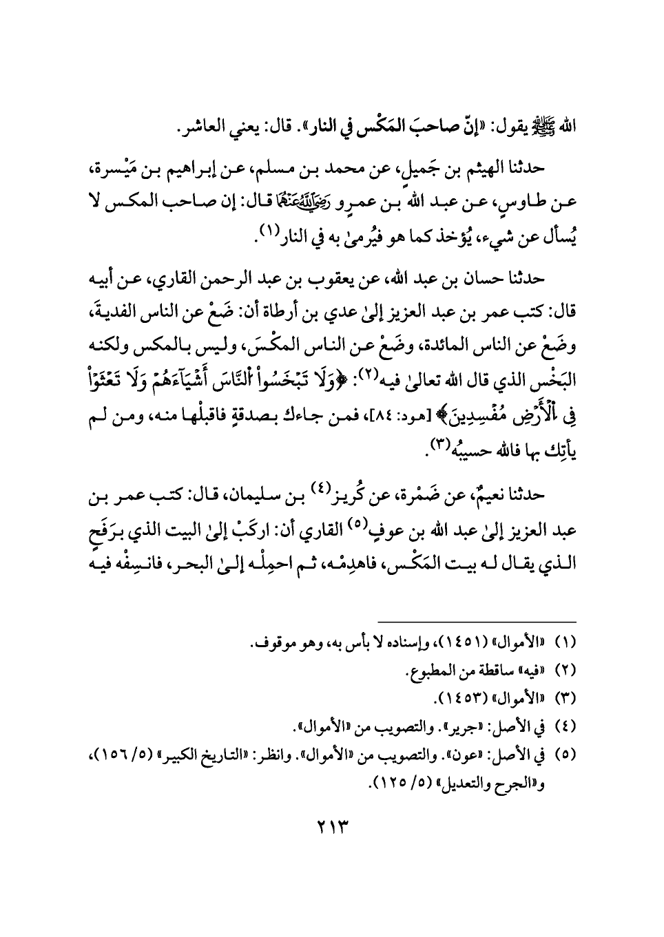 (¬١) "الأموال" (١٤٥١)، وإسناده لا بأس به، وهو موقوف.