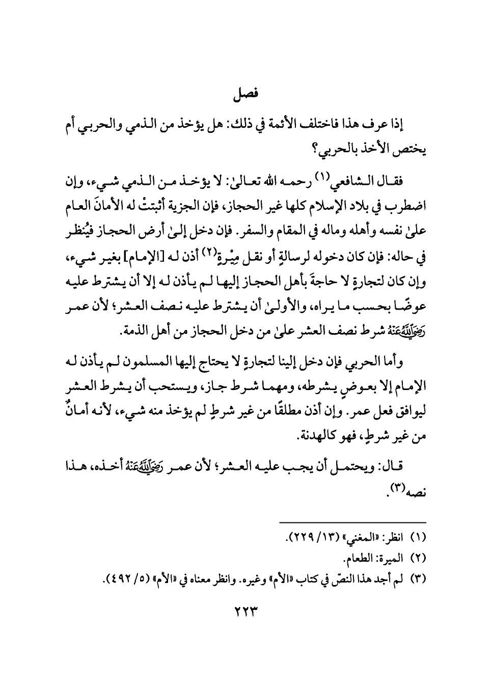 (¬٣) لم أجد هذا النصّ في كتاب "الأم" وغيره. وانظر معناه في "الأم" (٥/ ٤٩٢).