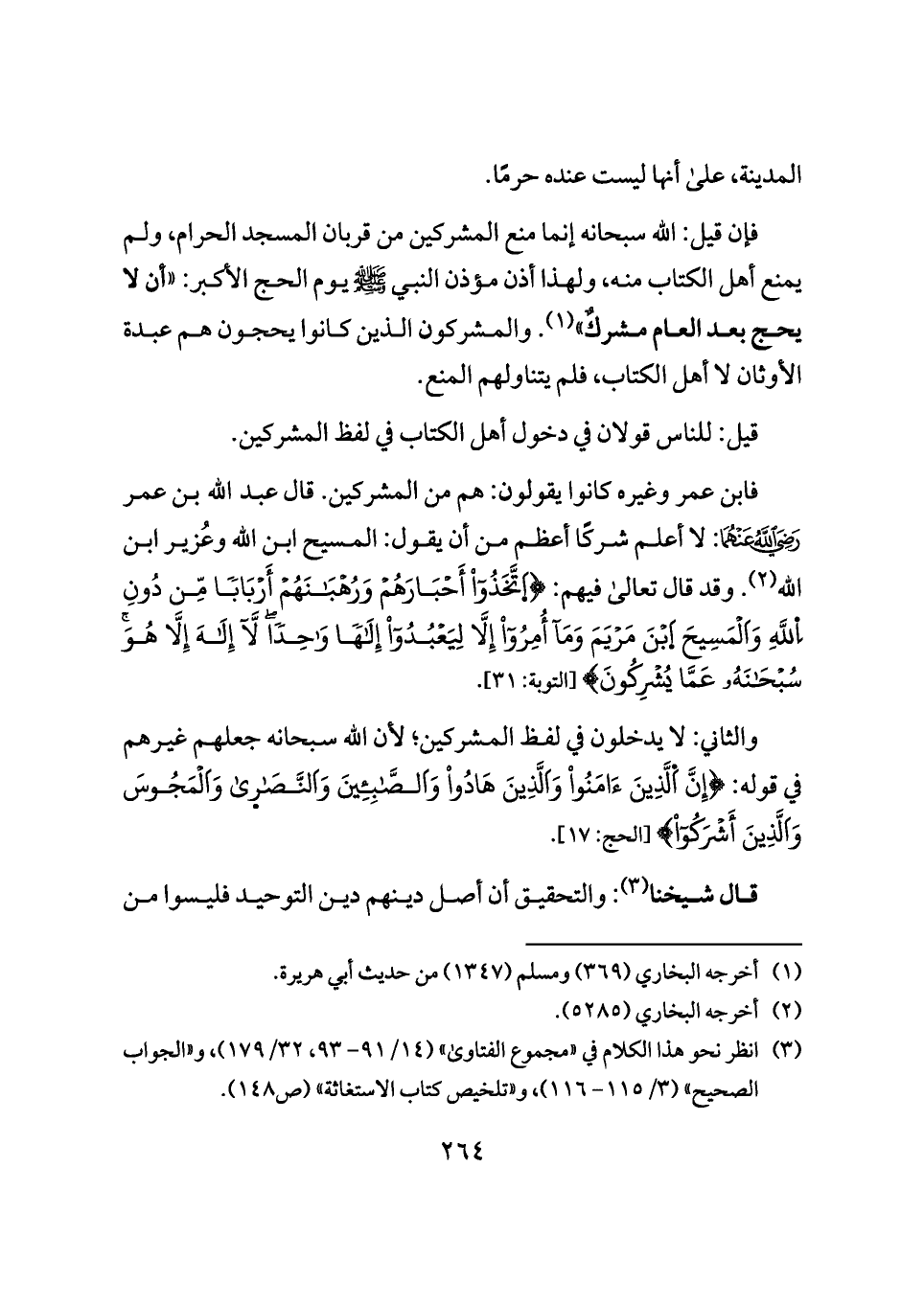 والثاني: لا يدخلون في لفظ المشركين؛ لأن الله سبحانه جعلهم غيرهم في قوله: {إِنَّ الَّذِينَ آمَنُوا وَالَّذِينَ هَادُوا وَالصَّابِئِينَ وَالنَّصَارَى وَالْمَجُوسَ وَالَّذِينَ أَشْرَكُوا} [الحج: ١٧].
