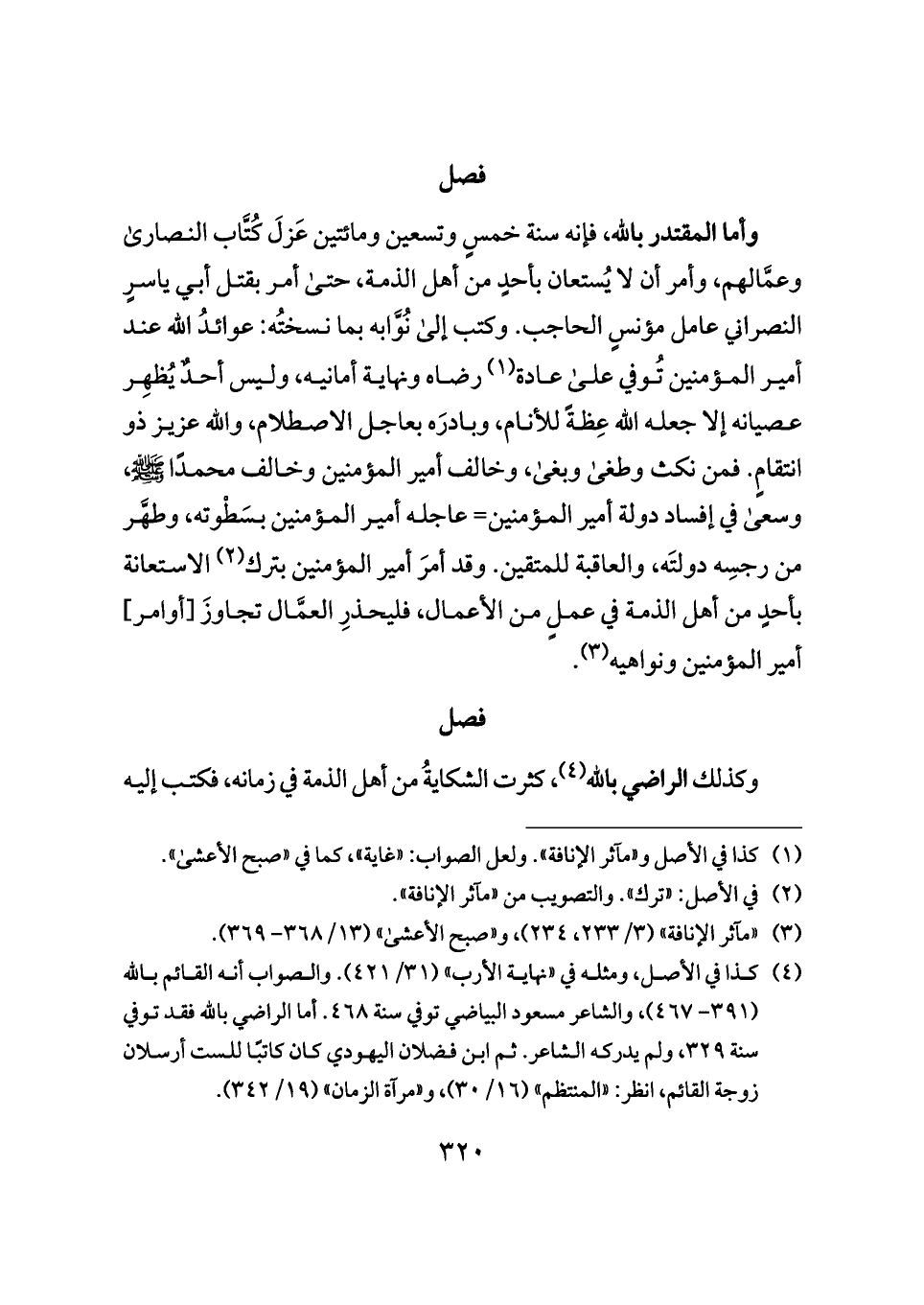 (¬٤) كذا في الأصل، ومثله في "نهاية الأرب" (٣١/ ٤٢١). والصواب أنه القائم بالله (٣٩١ - ٤٦٧)، والشاعر مسعود البياضي توفي سنة ٤٦٨. أما الراضي بالله فقد توفي سنة ٣٢٩، ولم يدركه الشاعر. ثم ابن فضلان اليهودي كان كاتبًا للست أرسلان زوجة القائم، انظر: "المنتظم" (١٦/ ٣٠)، و"مرآة الزمان" (١٩/ ٣٤٢).