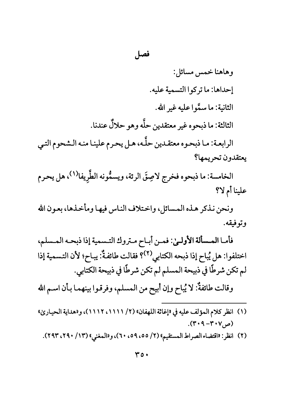ونحن نذكر هذه المسائل، واختلاف الناس فيها ومأخذها، بعون الله وتوفيقه.