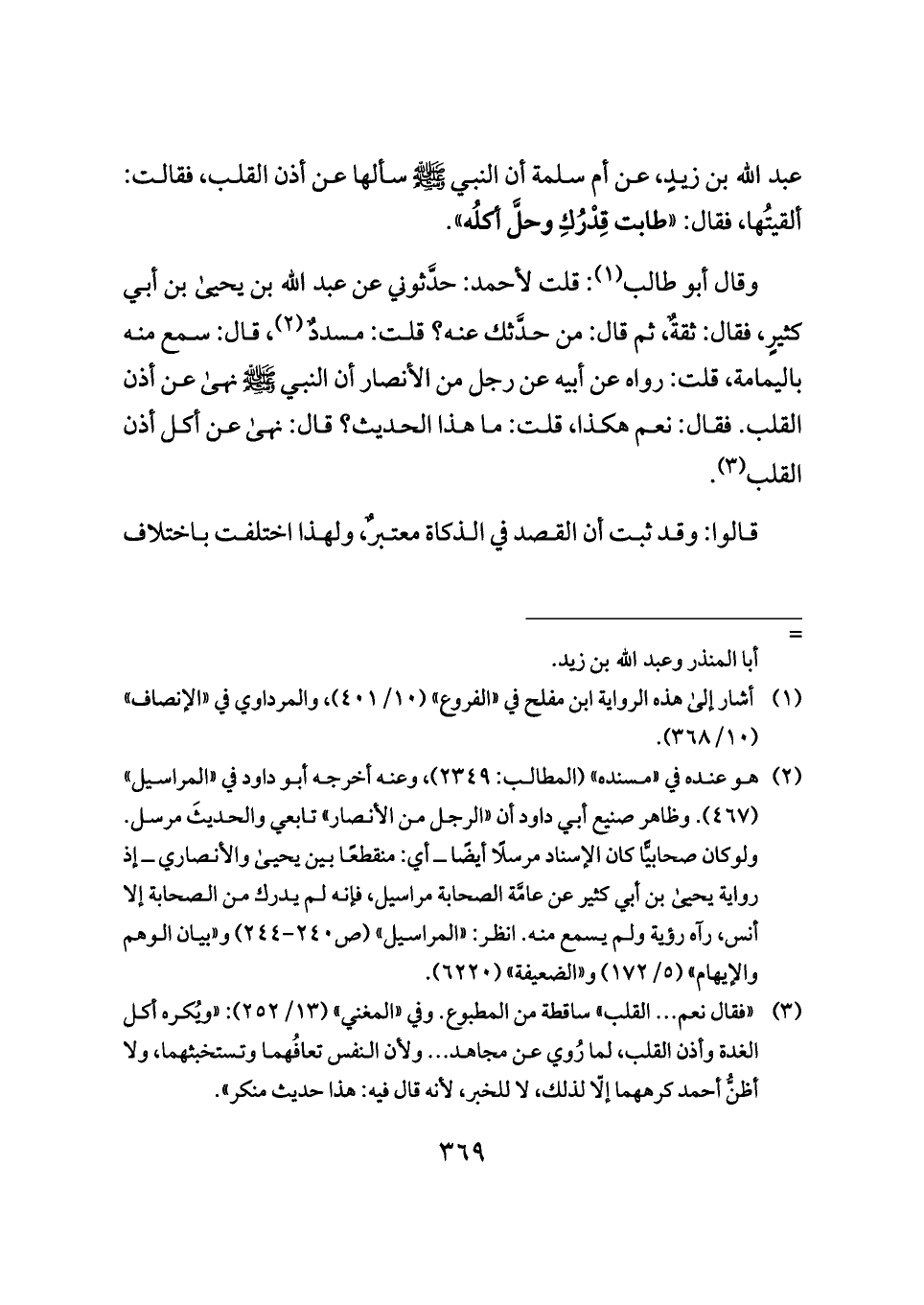 (¬٣) "فقال نعم ... القلب" ساقطة من المطبوع. وفي "المغني" (١٣/ ٢٥٢): "ويُكره أكل الغدة وأذن القلب، لما رُوي عن مجاهد ... ولأن النفس تعافُهما وتستخبثهما، ولا أظنُّ أحمد كرههما إلّا لذلك، لا للخبر، لأنه قال فيه: هذا حديث منكر".