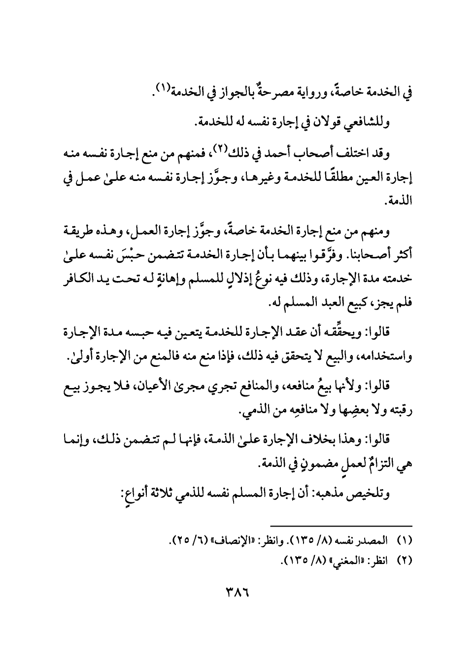 وتلخيص مذهبه: أن إجارة المسلم نفسه للذمي ثلاثة أنواعٍ: