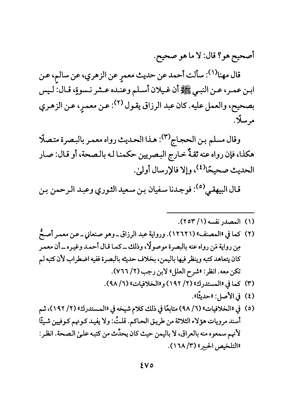 وقال مسلم بن الحجاج (¬٣): هذا الحديث رواه معمر بالبصرة متصلًا هكذا، فإن رواه عنه ثقةٌ خارج البصريين حكمنا له بالصحة، أو قال: صار الحديث صحيحًا (¬٤)، وإلا فالإرسال أولى.