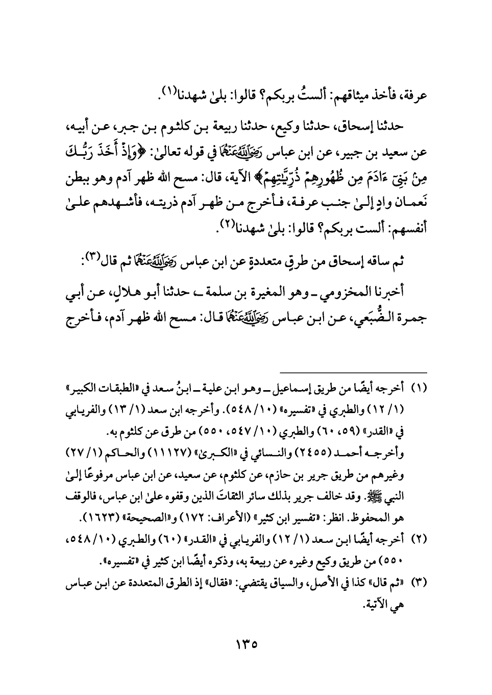 وأخرجه أحمد (٢٤٥٥) والنسائي في «الكبرى» (١١١٢٧) والحاكم (١/ ٢٧) وغيرهم من طريق جرير بن حازم، عن كلثوم، عن سعيد، عن ابن عباس مرفوعًا إلى النبي - صلى الله عليه وسلم -. وقد خالف جرير بذلك سائر الثقاتَ الذين وقفوه على ابن عباس، فالوقف هو المحفوظ. انظر: «تفسير ابن كثير» (الأعراف: ١٧٢) و «الصحيحة» (١٦٢٣).