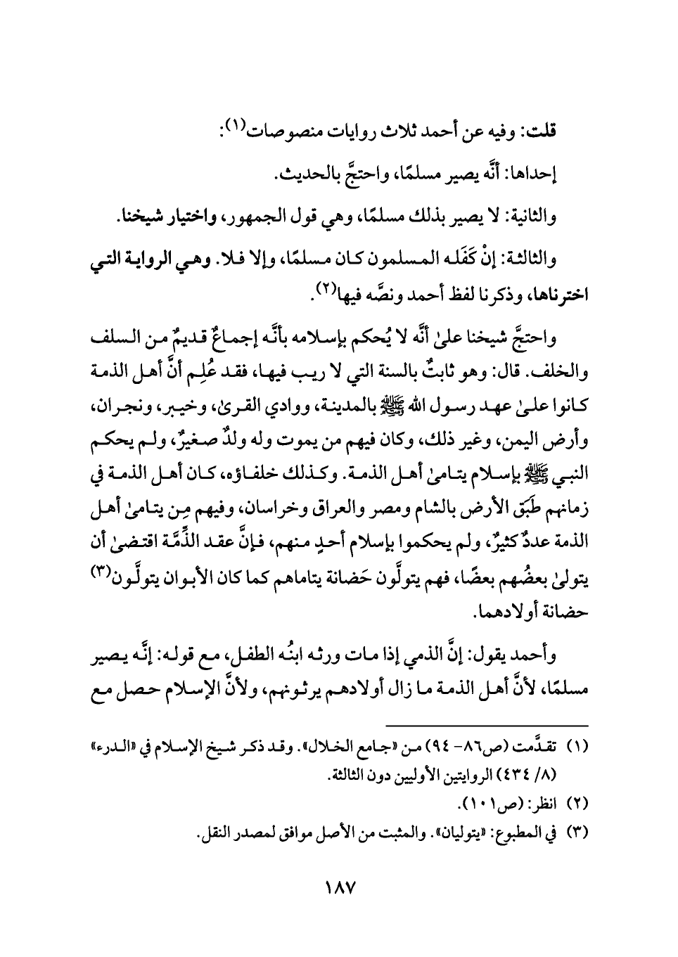 (¬١) تقدَّمت (ص ٨٦ - ٩٤) من «جامع الخلال». وقد ذكر شيخ الإسلام في «الدرء» (٨/ ٤٣٤) الروايتين الأوليين دون الثالثة.