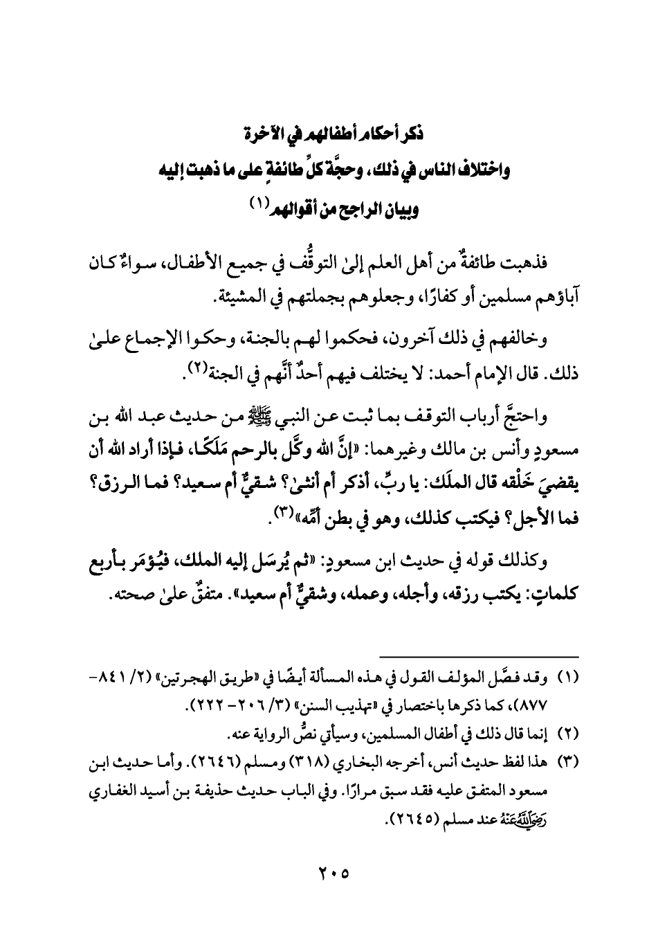 واحتجَّ أرباب التوقف بما ثبت عن النبي - صلى الله عليه وسلم - من حديث عبد الله بن مسعودٍ وأنس بن مالك وغيرهما: «إنَّ الله وكَّل بالرحم مَلَكًا، فإذا أراد الله أن يقضيَ خَلْقه قال الملَك: يا ربِّ، أذكر أم أنثى؟ شقيٌّ أم سعيد؟ فما الرزق؟ فما الأجل؟ فيكتب كذلك، وهو في بطن أمِّه» (¬٣).