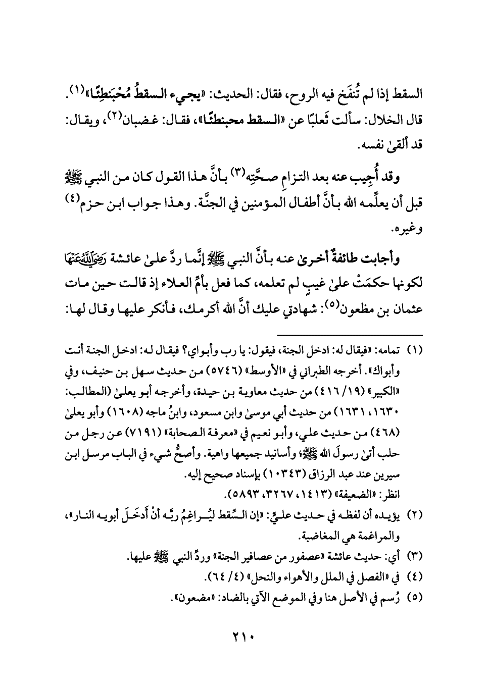 (¬٢) يؤيده أن لفظه في حديث عليٍّ: «إن السِّقط ليُراغِمُ ربَّه أنْ أَدخَلَ أبويه النار»، والمراغمة هي المغاضبة.