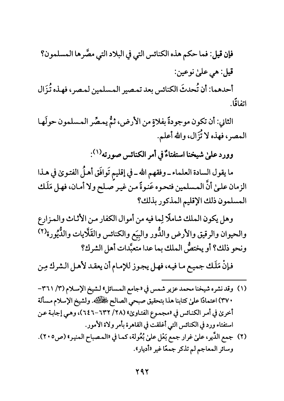 وورد على شيخنا استفتاءٌ في أمر الكنائس صورته (¬١):