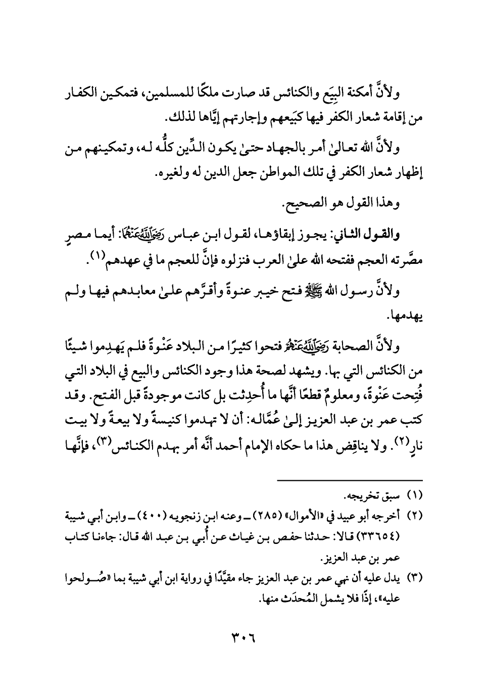 (¬٣) يدل عليه أن نهي عمر بن عبد العزيز جاء مقيَّدًا في رواية ابن أبي شيبة بما «صُولحوا عليه»، إذًا فلا يشمل المُحدَث منها.