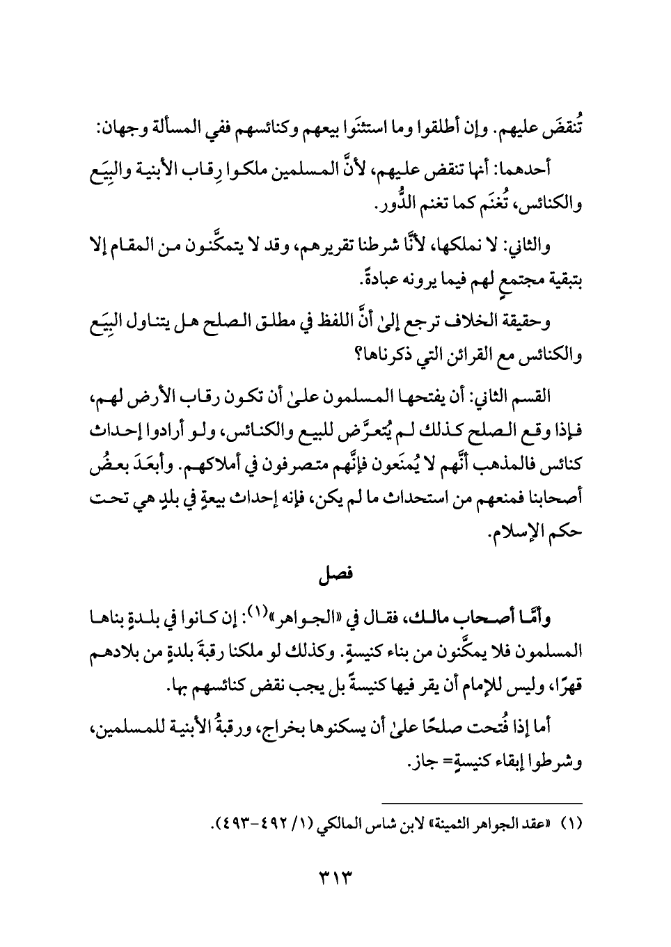 (¬١) «عقد الجواهر الثمينة» لابن شاس المالكي (١/ ٤٩٢ - ٤٩٣).