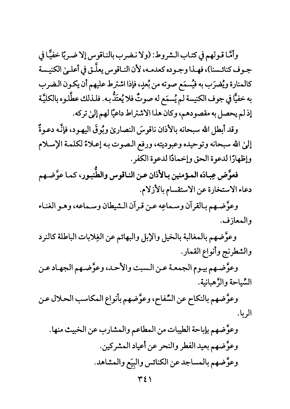 فعوَّض عِبادَه المؤمنين بالأذان عن الناقوس والطُّنبور، كما عوَّضهم دعاء الاستخارة عن الاستقسام بالأزلام.