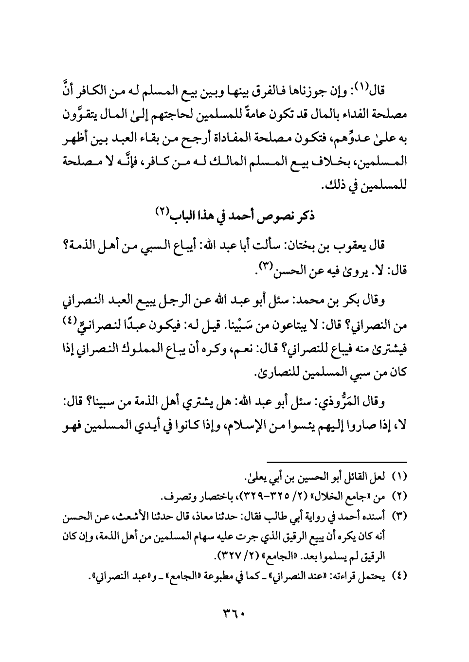وقال المَرُّوذي: سئل أبو عبد الله: هل يشتري أهل الذمة من سبينا؟ قال: لا، إذا صاروا إليهم يئسوا من الإسلام، وإذا كانوا في أيدي المسلمين فهو