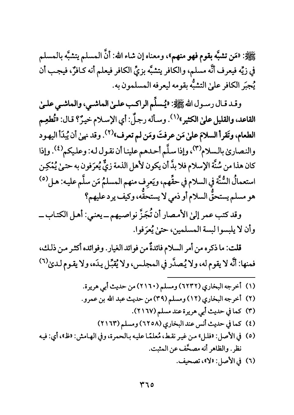 وقد قال رسول الله - صلى الله عليه وسلم -: «يُسلِّم الراكب على الماشي، والماشي على القاعد، والقليل على الكثير» (¬١). وسأله رجلٌ: أي الإسلام خيرٌ؟ قال: «تُطعِم الطعام، وتَقرأ السلامَ على مَن عرفتَ ومَن لم تعرف» (¬٢). وقد نهى أن يُبدَأ اليهود والنصارى بالسلام (¬٣)، وإذا سلَّم أحدهم علينا أن نقول له: وعليكم (¬٤). وإذا كان هذا من سُنَّة الإسلام فلا بدَّ أن يكون لأهل الذمة زيٌّ يُعرَفون به حتى يُمْكِن استعمالُ السُّنَّة في السلام في حقِّهم، ويَعرِف منهم المسلمُ مَن سلَّم عليه: هل (¬٥) هو مسلم يستحقُّ السلام أو ذمي لا يستحقُّه، وكيف يرد عليهم؟