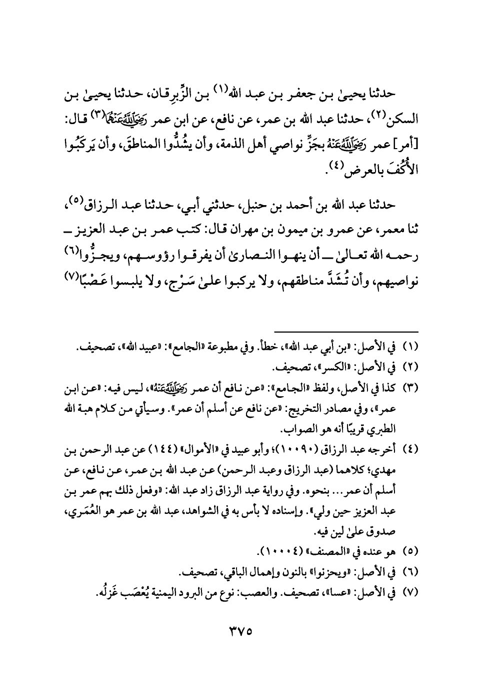 (¬٤) أخرجه عبد الرزاق (١٠٠٩٠)؛ وأبو عبيد في «الأموال» (١٤٤) عن عبد الرحمن بن مهدي؛ كلاهما (عبد الرزاق وعبد الرحمن) عن عبد الله بن عمر، عن نافع، عن أسلم أن عمر ... بنحوه. وفي رواية عبد الرزاق زاد عبد الله: «وفعل ذلك بهم عمر بن عبد العزيز حين ولي». وإسناده لا بأس به في الشواهد، عبد الله بن عمر هو العُمَري، صدوق على لين فيه.
