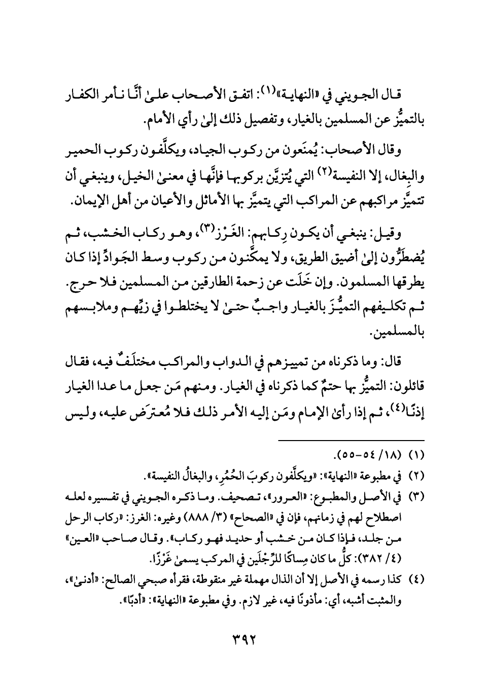 (¬٢) في مطبوعة «النهاية»: «ويكلَّفون ركوبَ الحُمُرِ، والبغالُ النفيسة».