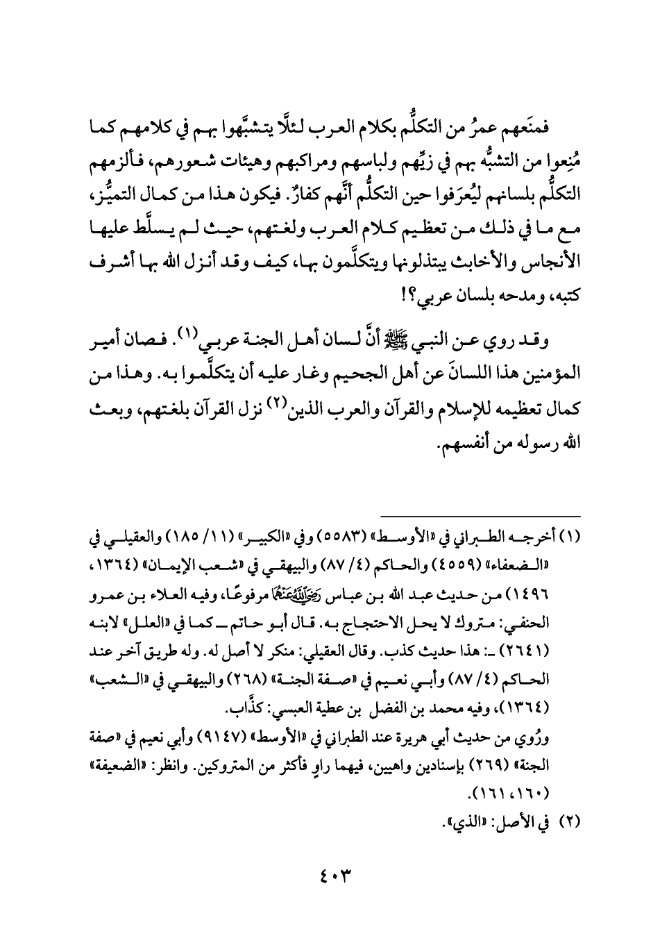 فصان أمير المؤمنين هذا اللسانَ عن أهل الجحيم وغار عليه أن يتكلَّموا به. وهذا من كمال تعظيمه للإسلام والقرآن والعرب الذين (¬٢) نزل القرآن بلغتهم، وبعث الله رسوله من أنفسهم.