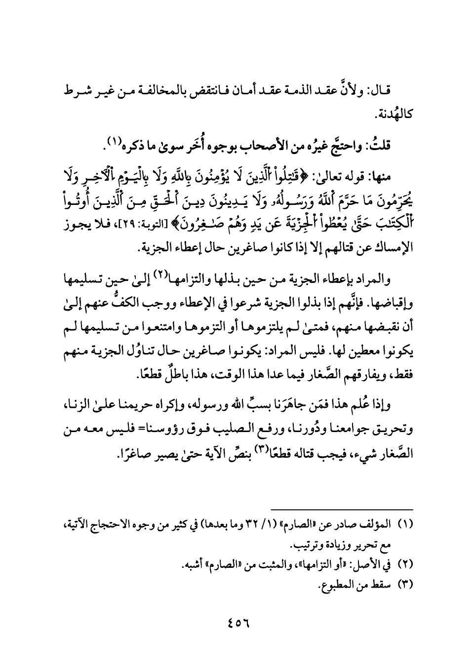 (¬٢) في الأصل: «أو التزامها»، والمثبت من «الصارم» أشبه.