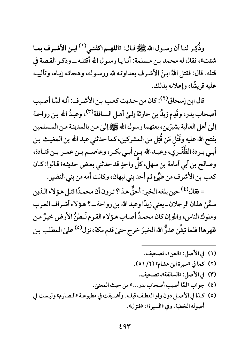 وذُكِر لنا أن رسول الله - صلى الله عليه وسلم - قال: «اللهم اكفني (¬١) ابن الأشرف بما شئت»، فقال له محمد بن مسلمة: أنا يا رسول الله أقتله ــ وذكر القصة في قتله. قال: فقتل اللهُ ابنَ الأشرف بعداوته لله ورسوله، وهجائه إياه، وتأليبه عليه قريشًا، وإعلانه بذلك.