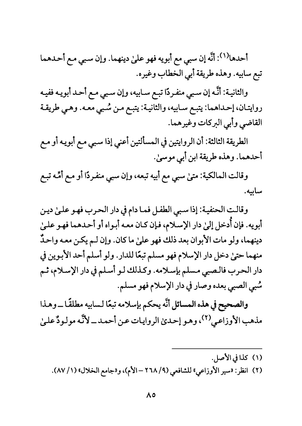 (¬٢) انظر: «سير الأوزاعي» للشافعي (٩/ ٢٦٨ - الأم)، و «جامع الخلال» (١/ ٨٧).