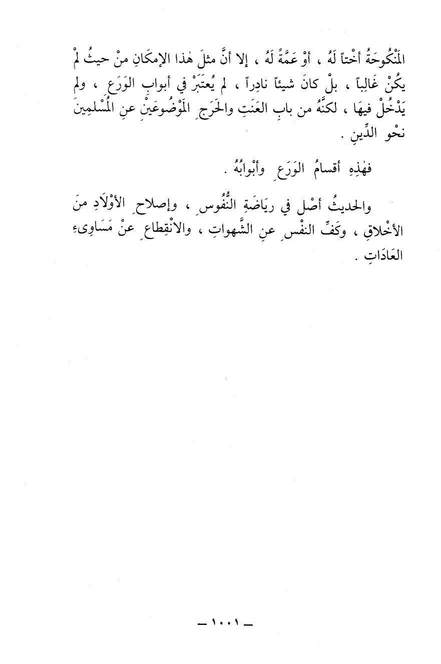 المنكوحة أختاً له أو عمة له، إلا أن مثل هذا الإمكان من حيث لم يكن غالبا، بل كان شيئا نادرا، لم يعتبر في أبواب الورع، ولم يدخل فيها، لكنه من باب التعنت والحرج الموضوعين عن المسلمين نحو الدين.