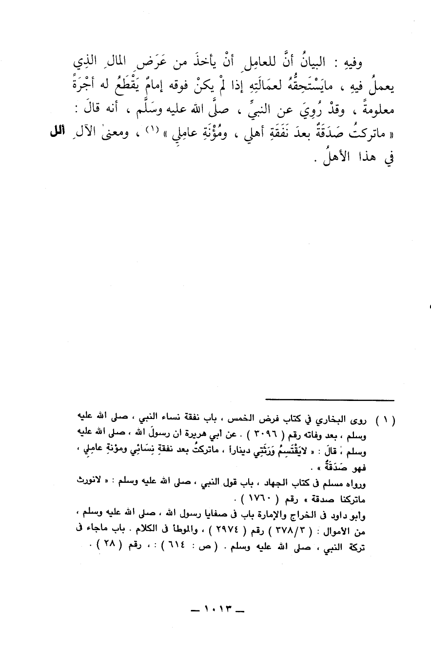 " ما تركت صَدقة بعد نَفَقة أهلي , ومُؤْنَة عامِلي " , ومعنى الآل