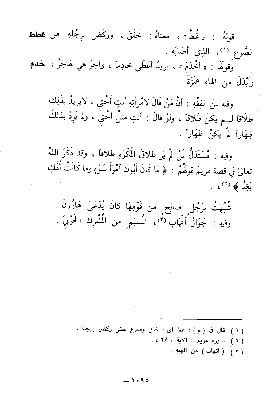 وفيه: مُسْتَدل لمن لم يرَ طلاق المُكره طلاقا , وقد ذكر الله تعالى في قصّة مريم قولهم: {ما كان أبوكِ امرأ سَوءٍ وما كانت أمكِ بَغِيّا}.