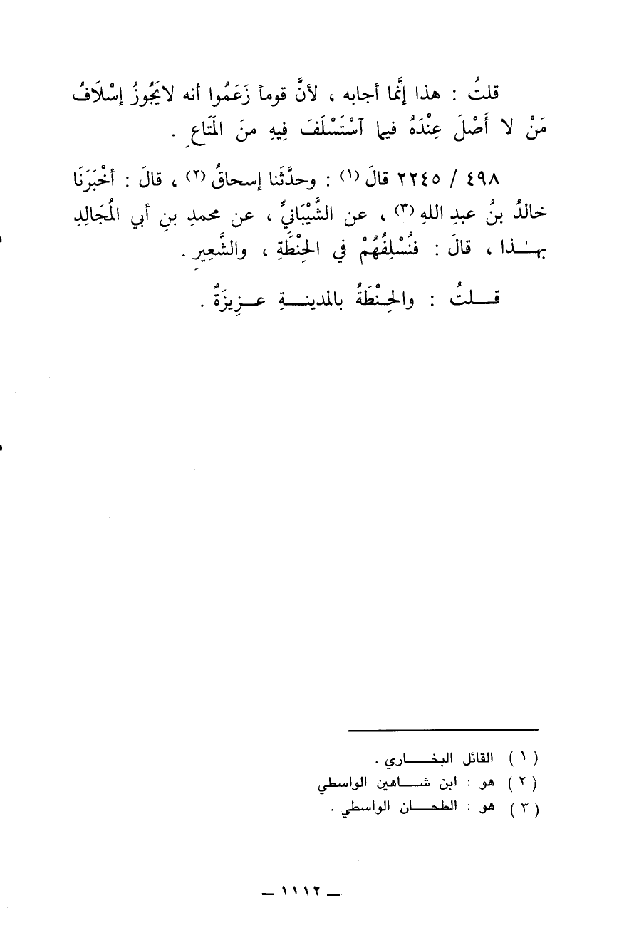489/ 2245 - قال: وحدّثنا إسحاق , قال: أخبرنا خالد بن عبد الله , عن الشيباني , عن محمد بن أبي المُجالِد بهذا , قال: فنُسْلِفُهم في الحِنطة , والشّعير.