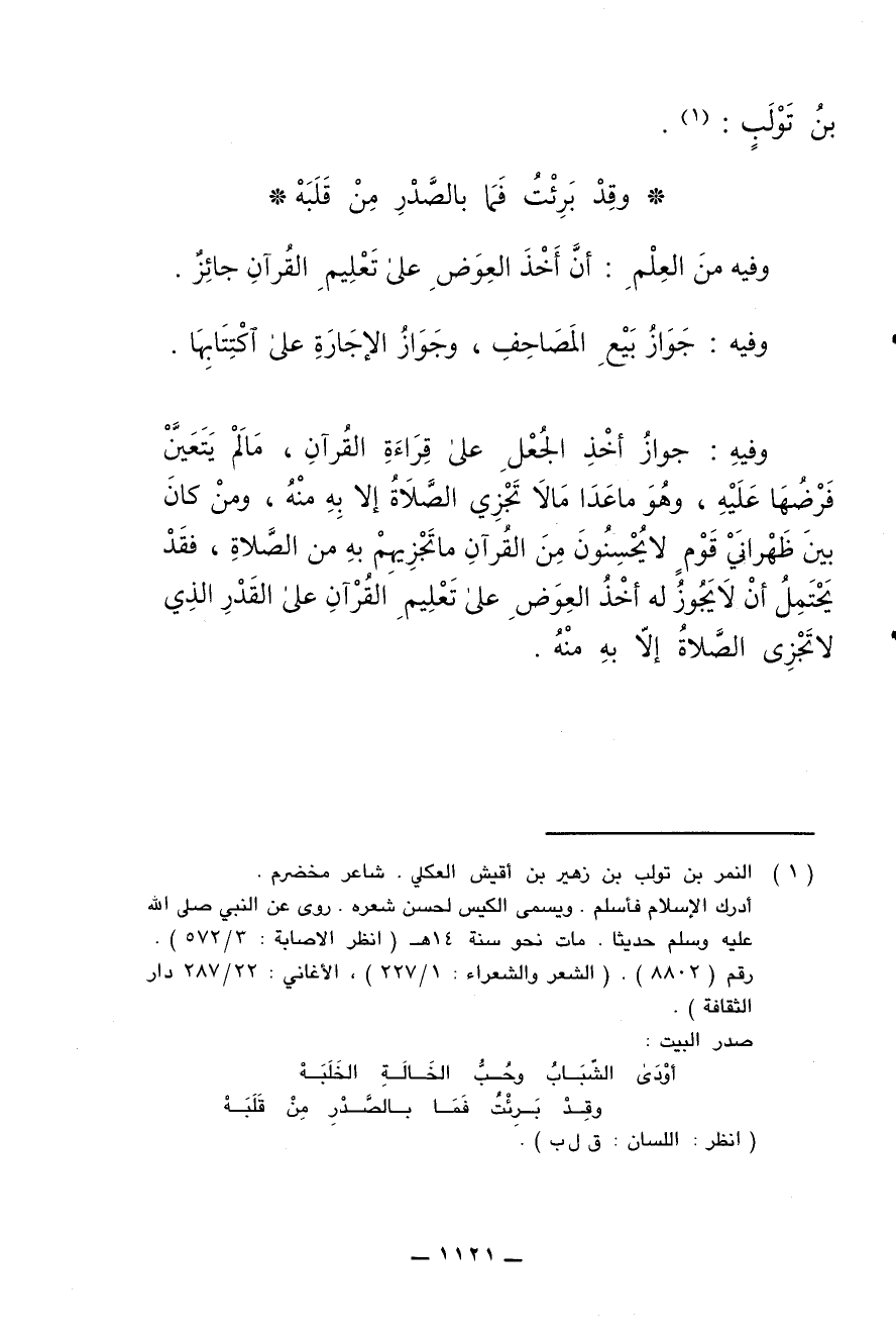 * وقد بَرئْتُ فما بالصّدر من قَلَبة *