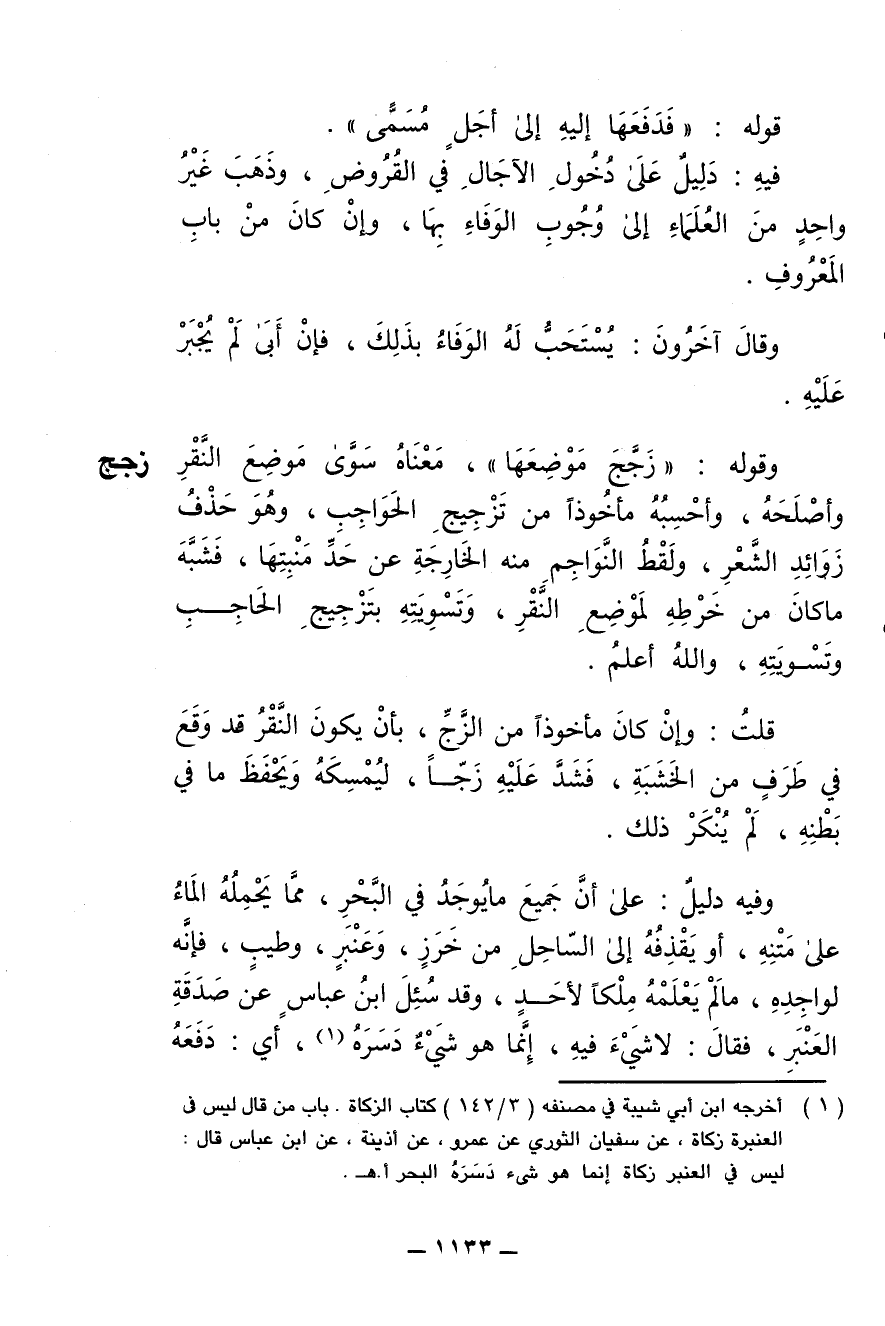 قلت: وإن كان مأخوذا من الزَّجّ , بأن يكون النَّقْر قد وقَع في طرف من الخشبة , فشَدّ عليه زَجًّا , ليُمسِكه ويحفظ ما في بطنه , لم يُنكَر ذلك.