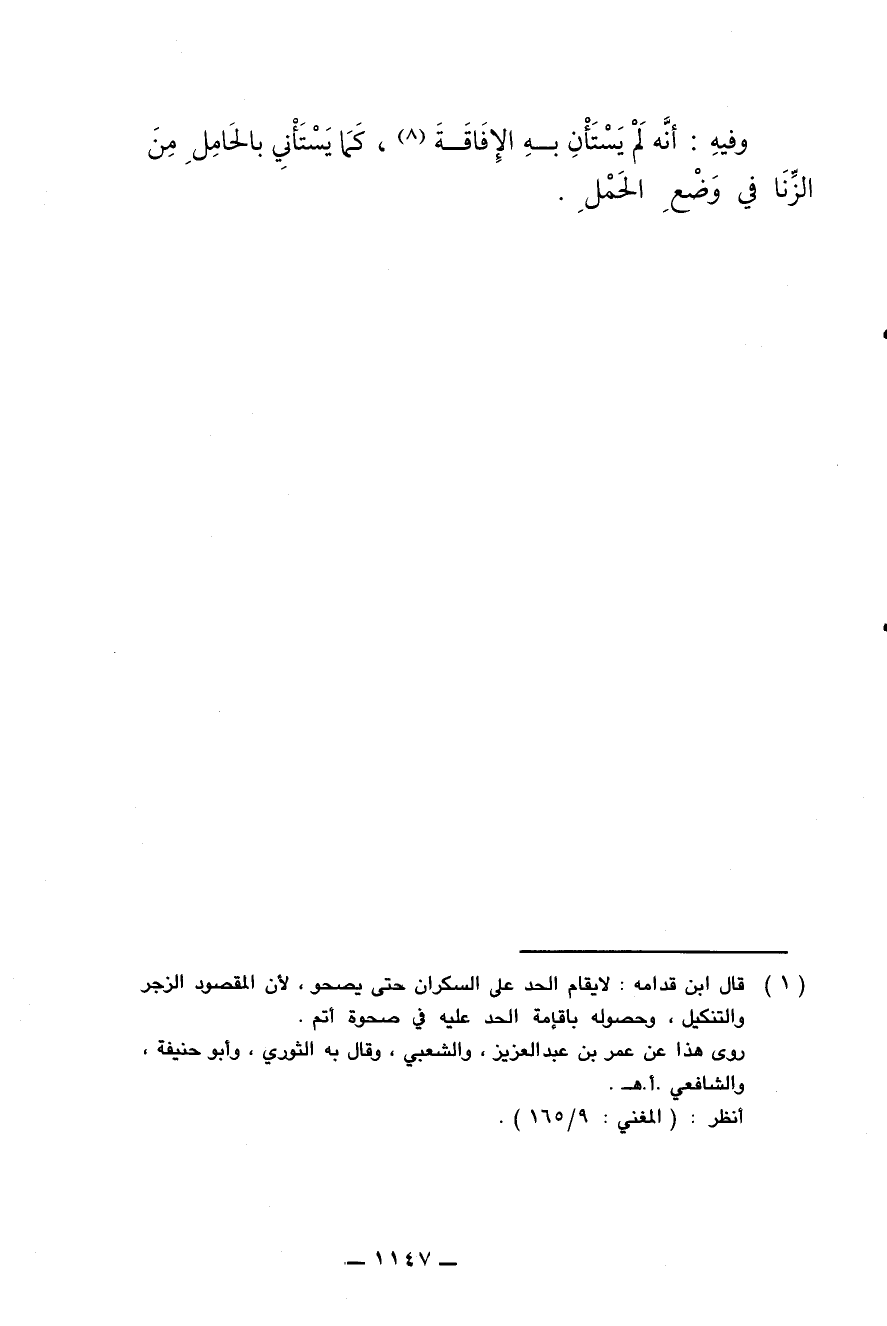 وفيه: أنه لم يَسْتَأنِ به الإفاقة , كما يستأني بالحامِل من الزِّنا في وضع الحَمْل.