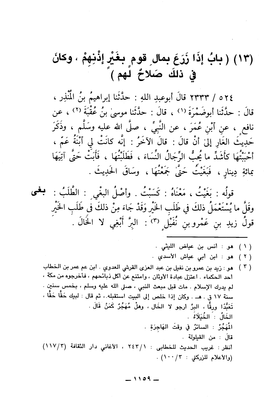 (13) (باب إذا زَرَع بمال قوم بغير إذنهم , وكان في ذلك صلاح لهم)