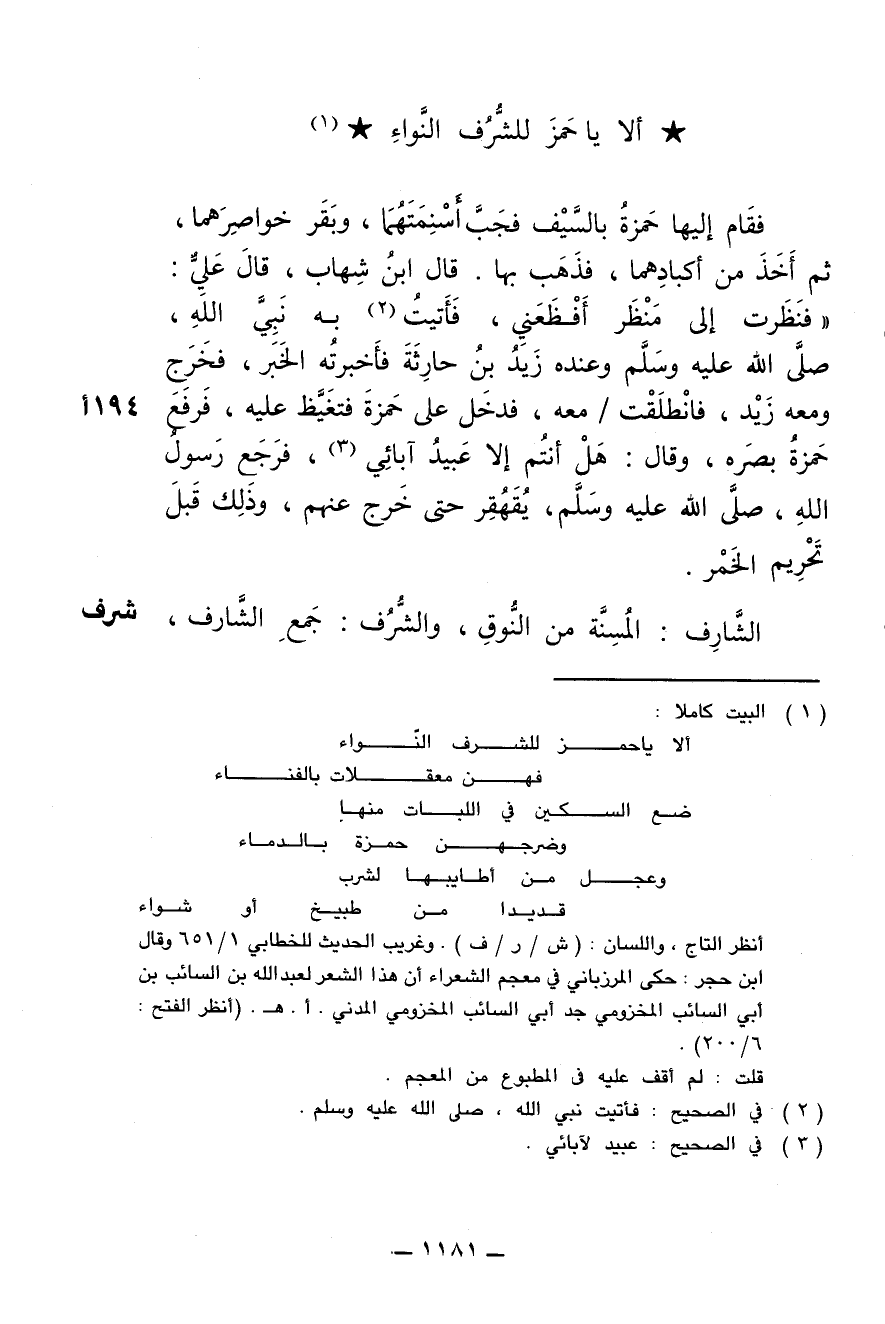* ألا يا حَمْزَ للشُّرُف النّواءِ *