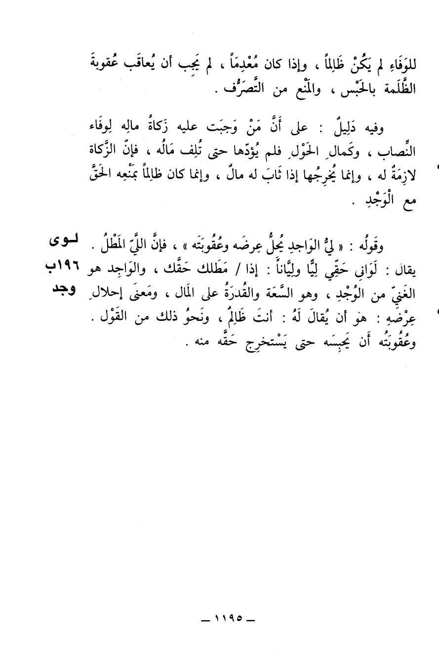يقال: لواني حقّي ليًّا ولِيَّانًا: إذا مطلك حقّك , والواجِد هو الغنيّ من الوُجد , وهو السَّعَة والقُدرة على المال , ومعنى إحلال عِرضه: هو أن يقال له: أنت ظالم , ونحو ذلك من القول.